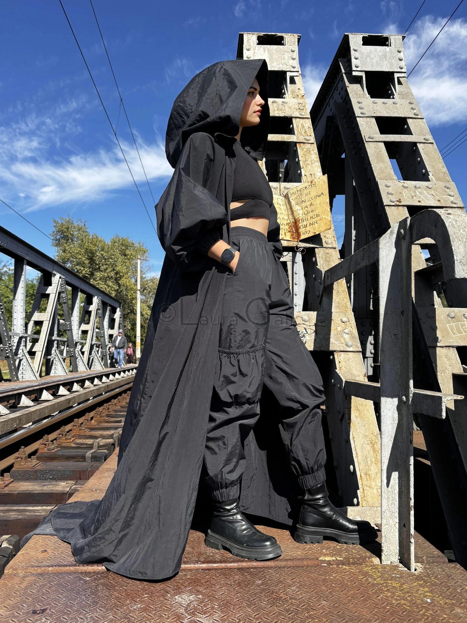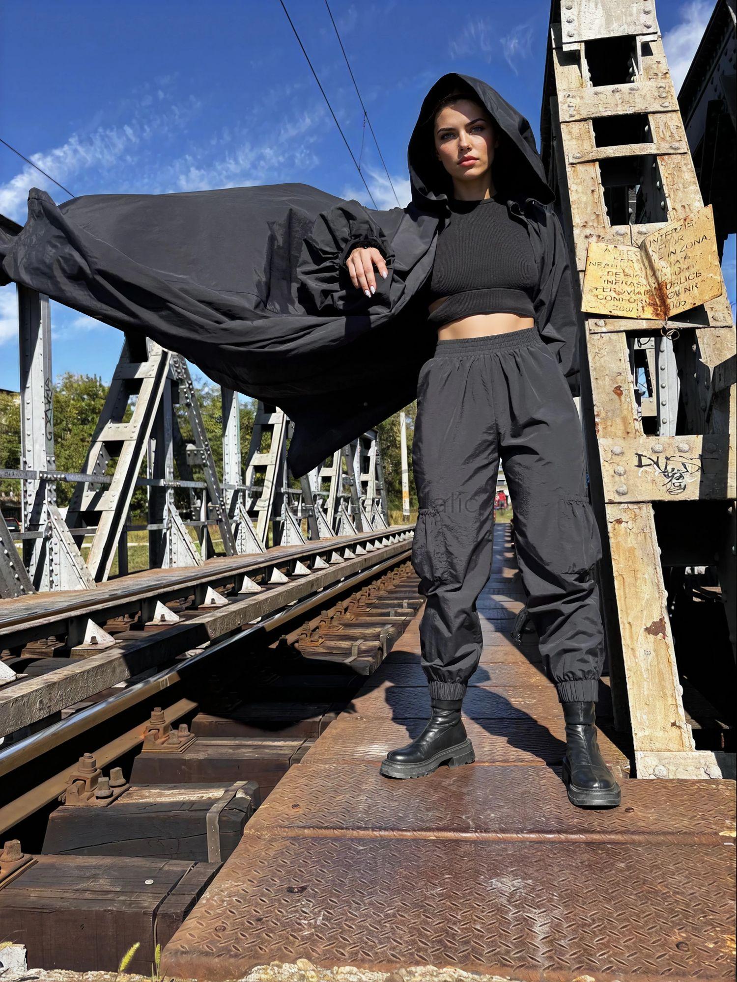 Gothic-chic pantaloni cargo, elastic talie, tafta memory, 4 buzunare laterale